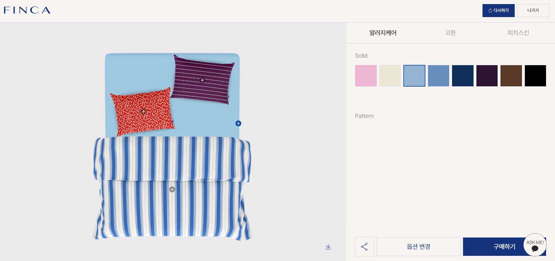 ๋ ์ทจํฅ์ ๋์์ธํ ์ ์๋ 3D ์ด๊ฐ์ธํ ์๋น์ค๋ก, 77๊ฐ์ง ํจํด, 39๊ฐ์ง ์๋ฆฌ๋ ์ปฌ๋ฌ, ์ธ ๊ฐ์ง ์ฌ์ง ์กฐํฉ์ผ๋ก ๋ฌด๋ ค 250๋ง ๊ฐ์ง์ ๋ง์ถคํ ์นจ๊ตฌ๋ฅผ ๋ง๋ค ์ ์๋ค๊ณ ํฉ๋๋ค. ์ง์ ๊ณ ๋ฅธ ์์๊ณผ ํจํด์ด ์ค์๊ฐ ๊ทธ๋ํฝ์ผ๋ก ๊ตฌํ๋ผ โ๋๋ง์ ์นจ์คโ์ ํ๋์ ๋ณผ ์ ์์ฃ . ์ถ์ 2์ฃผ ๋ง์ ์ด์ฉ์ ์ 3๋ง ๋ช