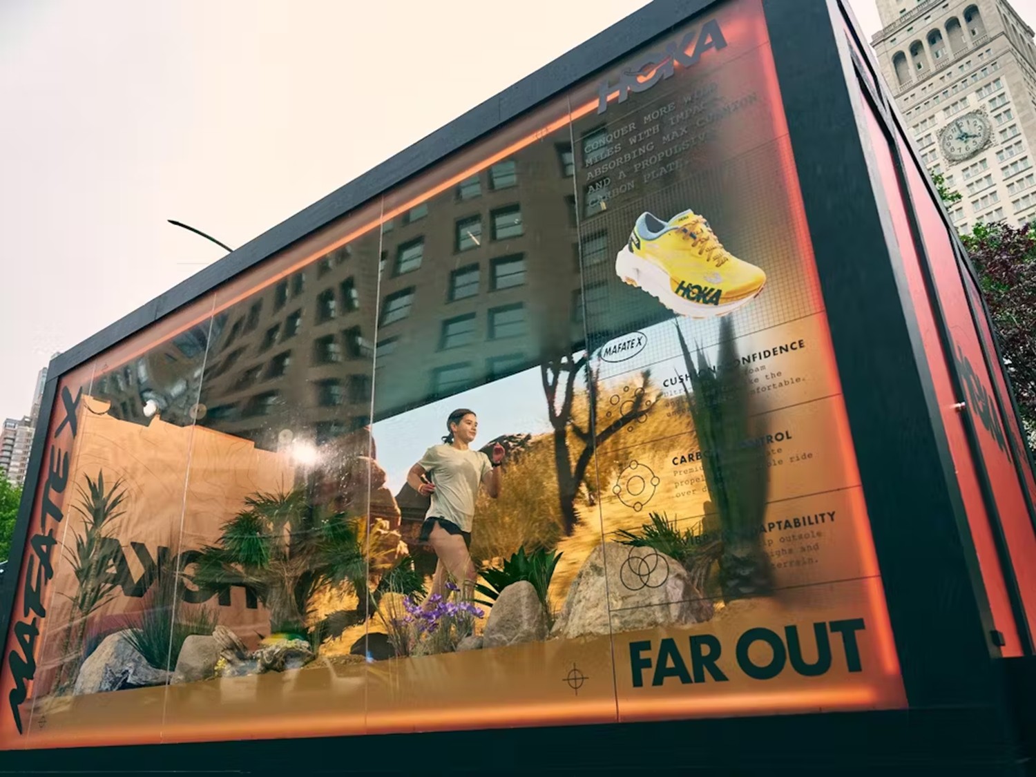 디테일하게 제품에 가장 잘 어울리는 무대이자 광고판을 완성한 호카의 아이디어네요.
