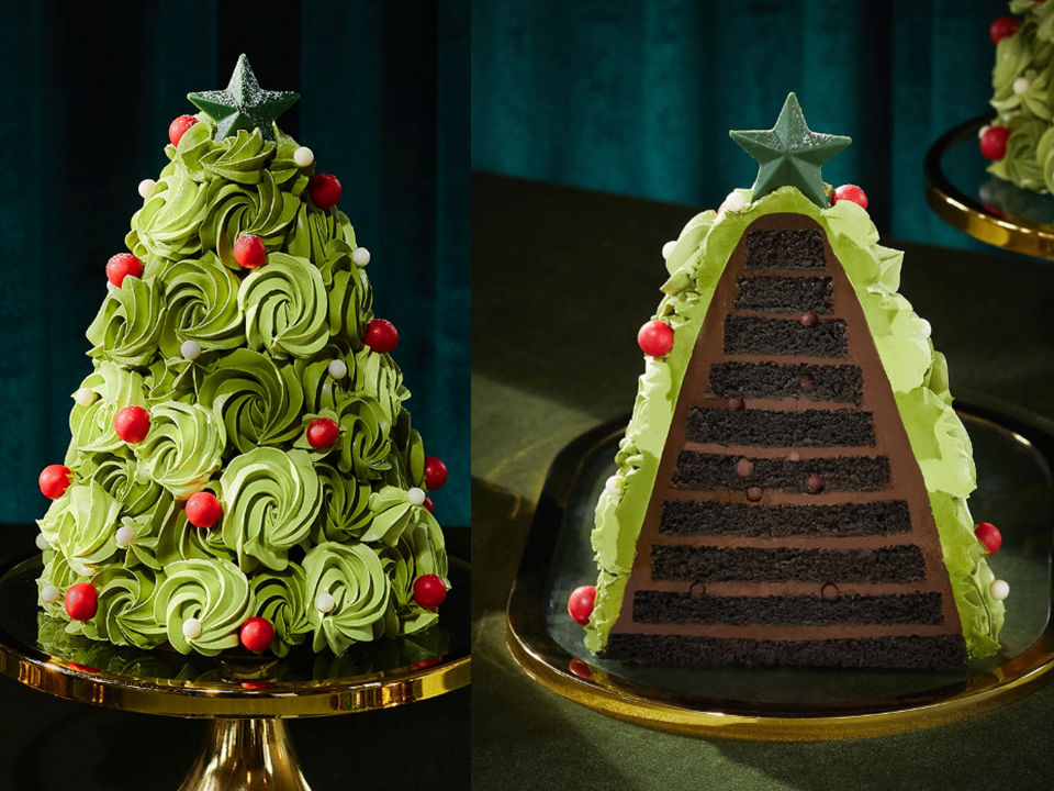 - 블랙 벨벳 시트, 가나슈 크림, 진한 초콜릿으로 구성된 메뉴입니다. 크리스마스 트리를 닮은 화려한 비주얼이 돋보이죠. 지난 13일 온라인 사전 예약이 오픈됐지만 빠르게 예약 마감되며 다시 한번 핫한 인기를 증명했어요.