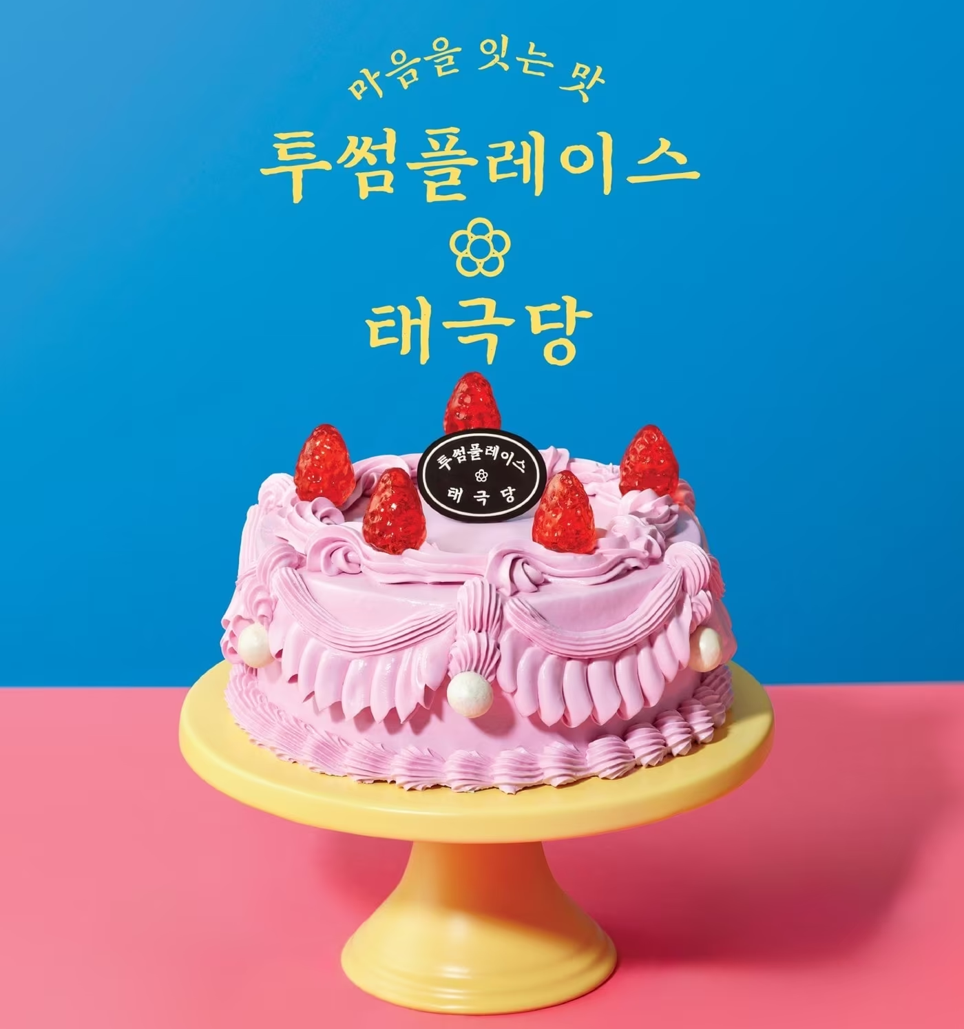 - 카페 브랜드와 유명 베이커리가 함께 시즌 케이크를 선보인 건 이번이 처음은 아닙니다. 지난 9월 투썸플레이스는 추석을 앞두고 서울에서 가장 오래된 빵집으로 유명한 태극당과 손잡고 케이크, 모나카 등 한정판 메뉴를 출시했어요. 특히 투썸X태극당 케이크는 태극당의 상징인 딸기 모양 젤리와 태극당 로고를 더한 뉴트로 비주얼로 인기였죠.