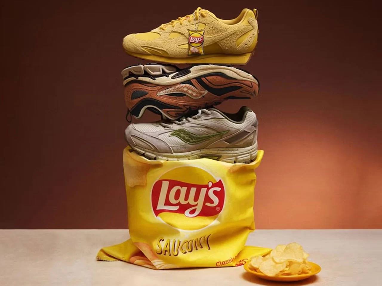 이 신발을 신고 걸으면 바삭바삭한 소리가 날 것 같습니다. 마치 감자칩을 먹을 때 나는 소리처럼요. 실제로 감자칩과 컬래버레이션한 스니커즈입니다. 스포츠 패션 브랜드 써코니와 스낵 기업 레이즈가 함께 만든 3가지 스니커즈죠.